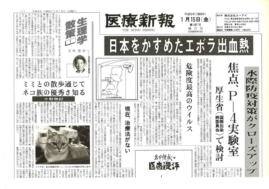 当時の厚生省保険医療局結核・感染症対策室の担当者は小紙の取材に対して「今回のケースについては二次感染もなく米国CDCでの検査結果でもエボラ出血熱であるという